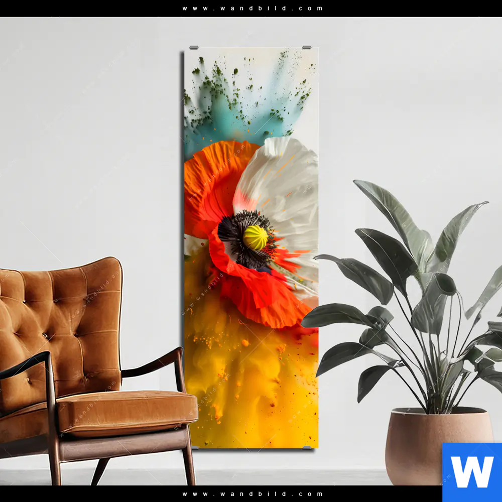 Alu-Dibond Bild | Mohnblume im Farbnebel | Schmal
