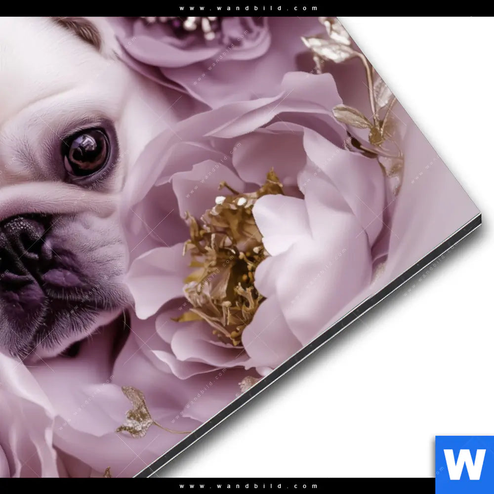 Alu-Dibond Bild | Mops im Blütenmeer | Querformat