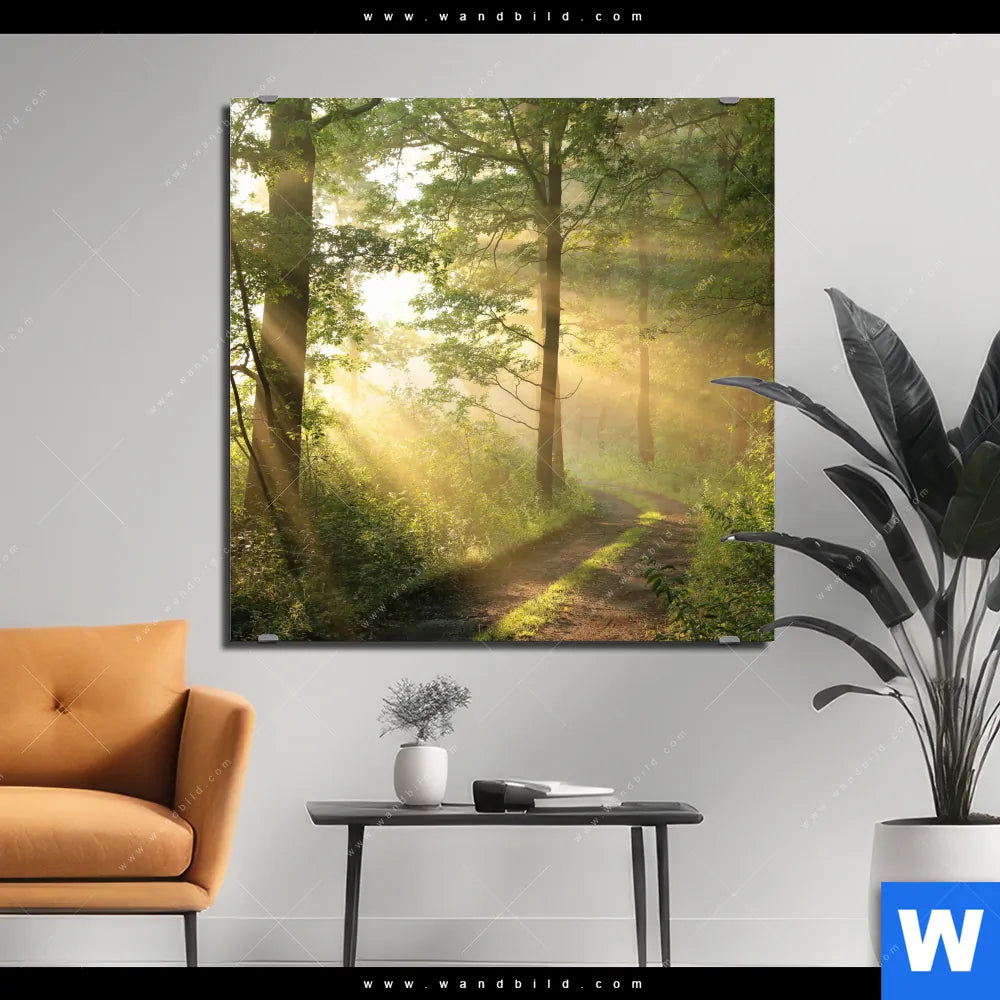 Alu-Dibond Bild | Morgenspaziergang im nebeligem Wald | Quadrat