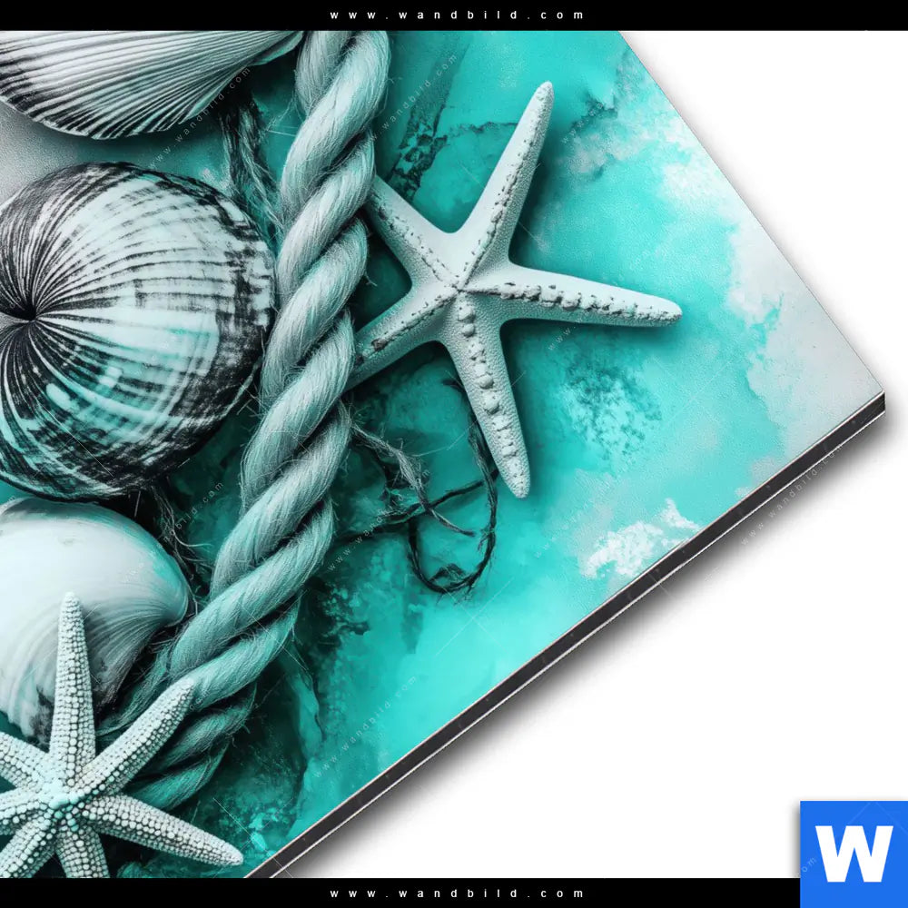 Alu-Dibond Bild | Muscheln-Meereszauber in Türkis | Quadrat