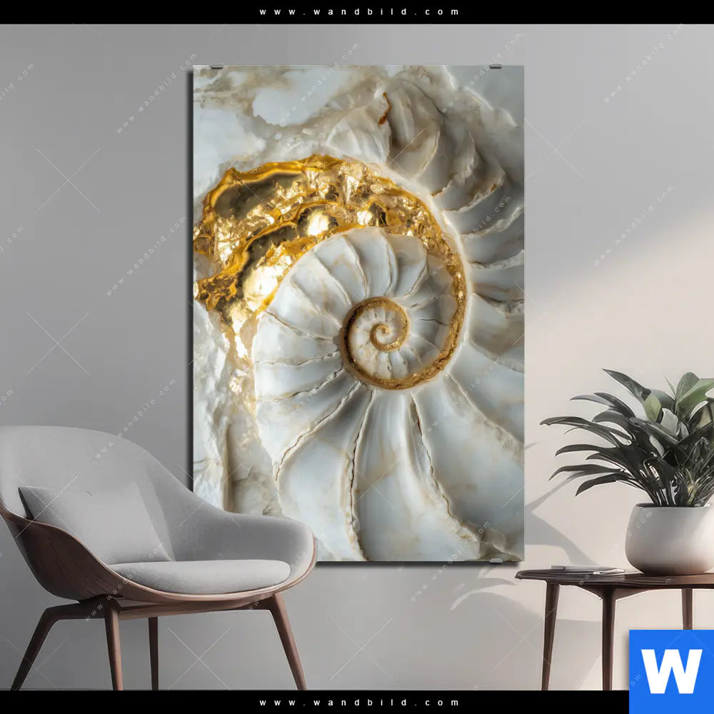 Alu-Dibond Bild | Muschelspirale mit Gold | Hochformat