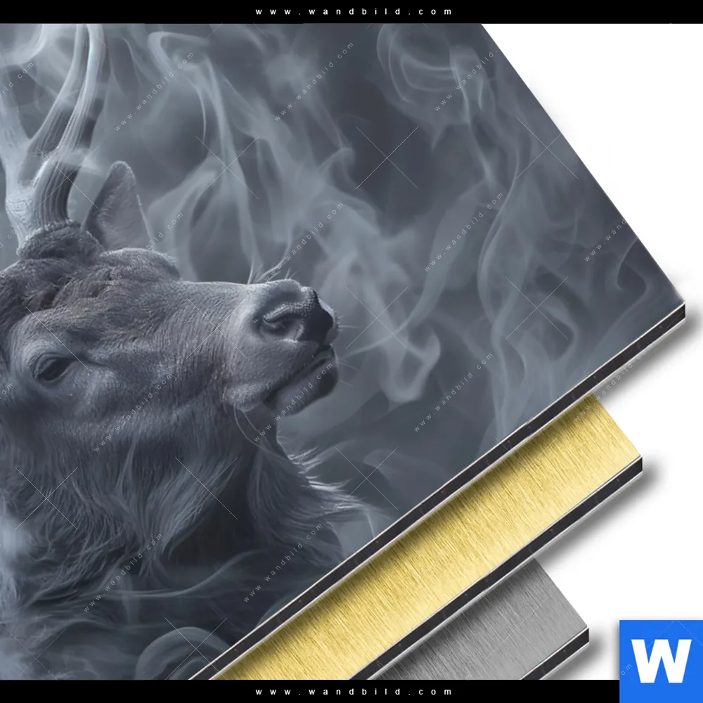 Alu-Dibond Bild | Mystischer Hirsch im Nebel | Querformat