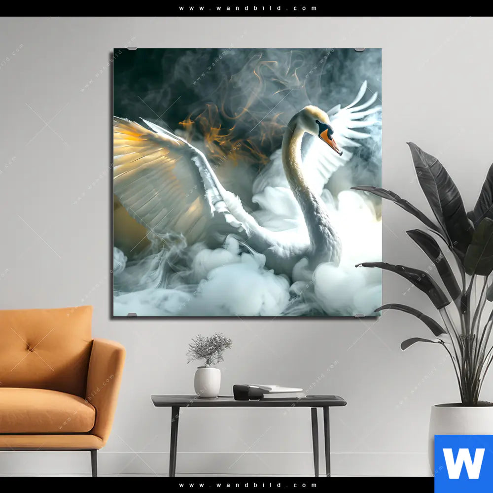 Alu-Dibond Bild | Mystischer Schwan im Nebel | Quadrat
