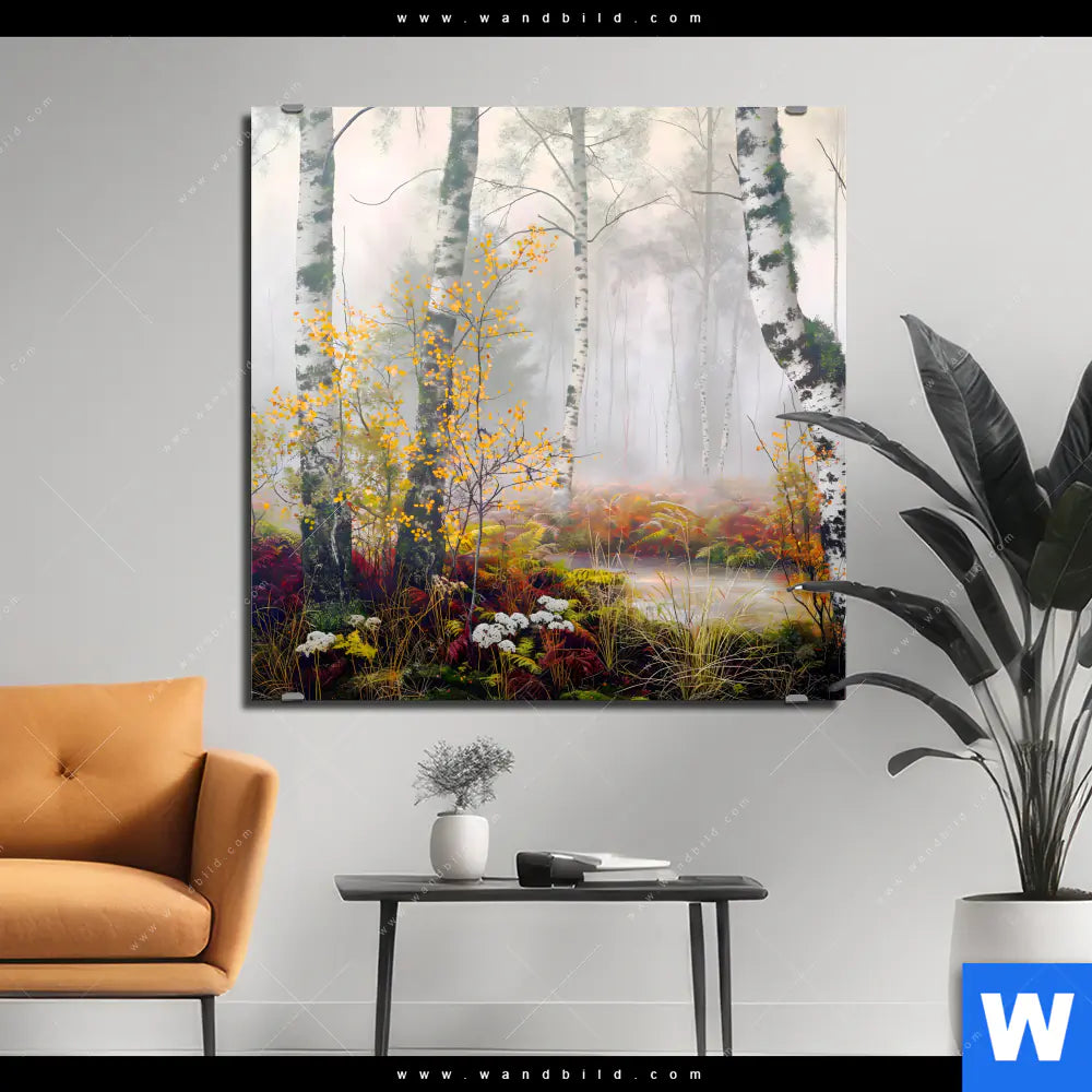 Alu-Dibond Bild | Naturidylle - Birken im Nebel | Quadrat