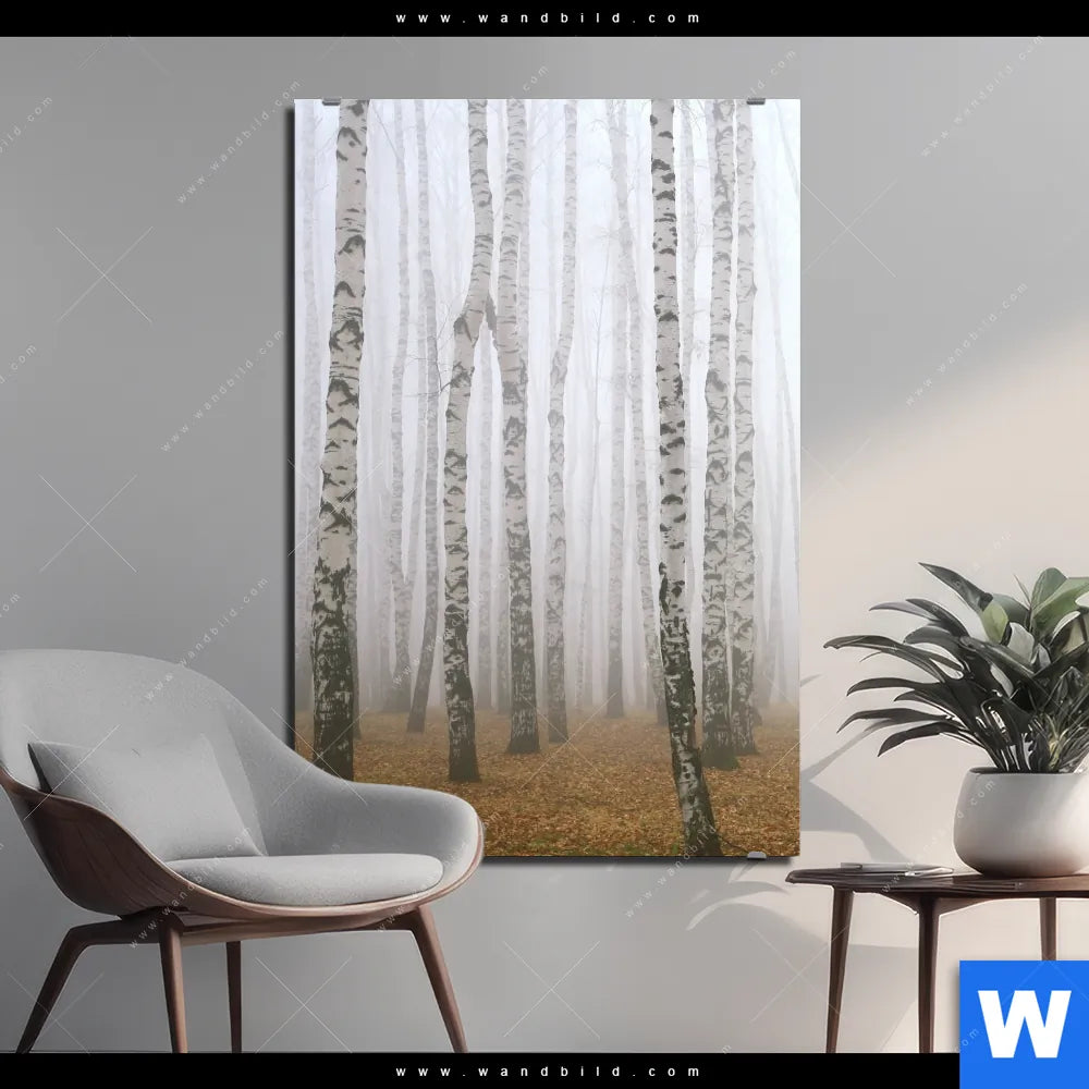 Alu-Dibond Bild | Nebel im Birkenwald | Hochformat