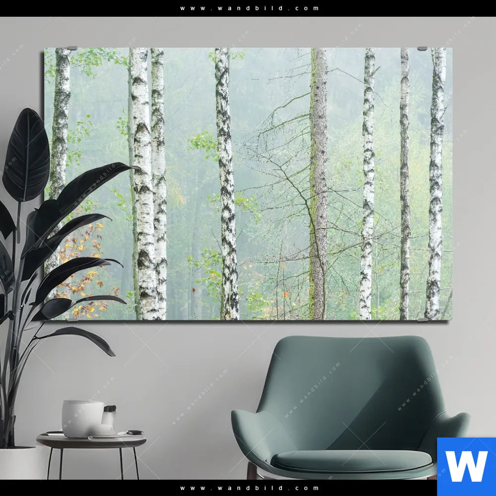 Alu-Dibond Bild | Nebliger Birkenwald | Querformat
