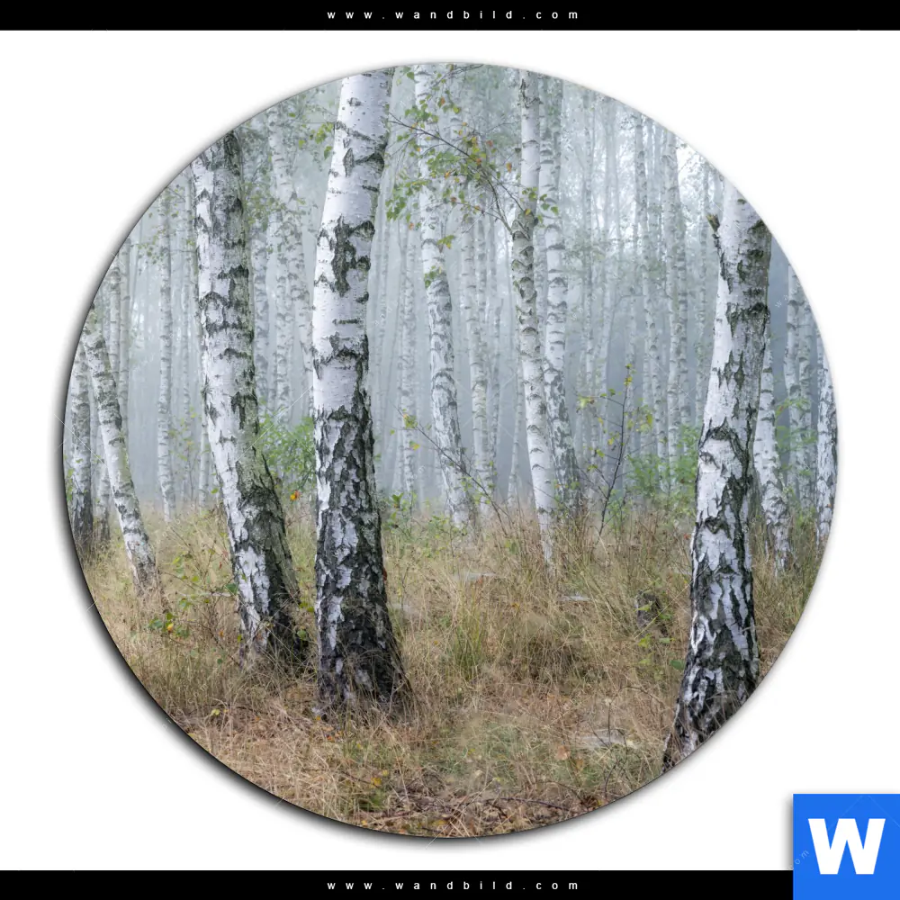 Alu-Dibond Bild | Nebliger Morgen im Birkenwald | Rund