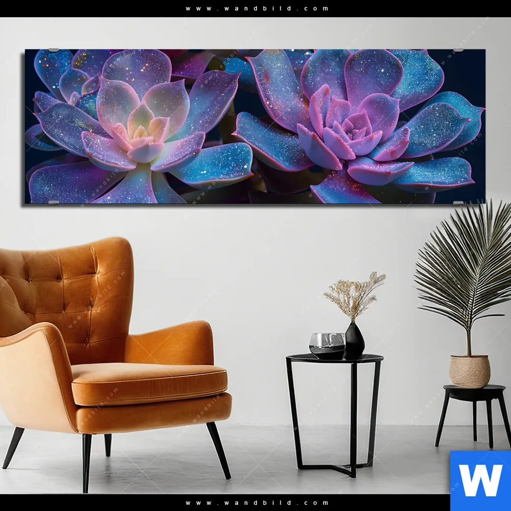 Alu-Dibond Bild | Neon Sukkulenten | Panorama