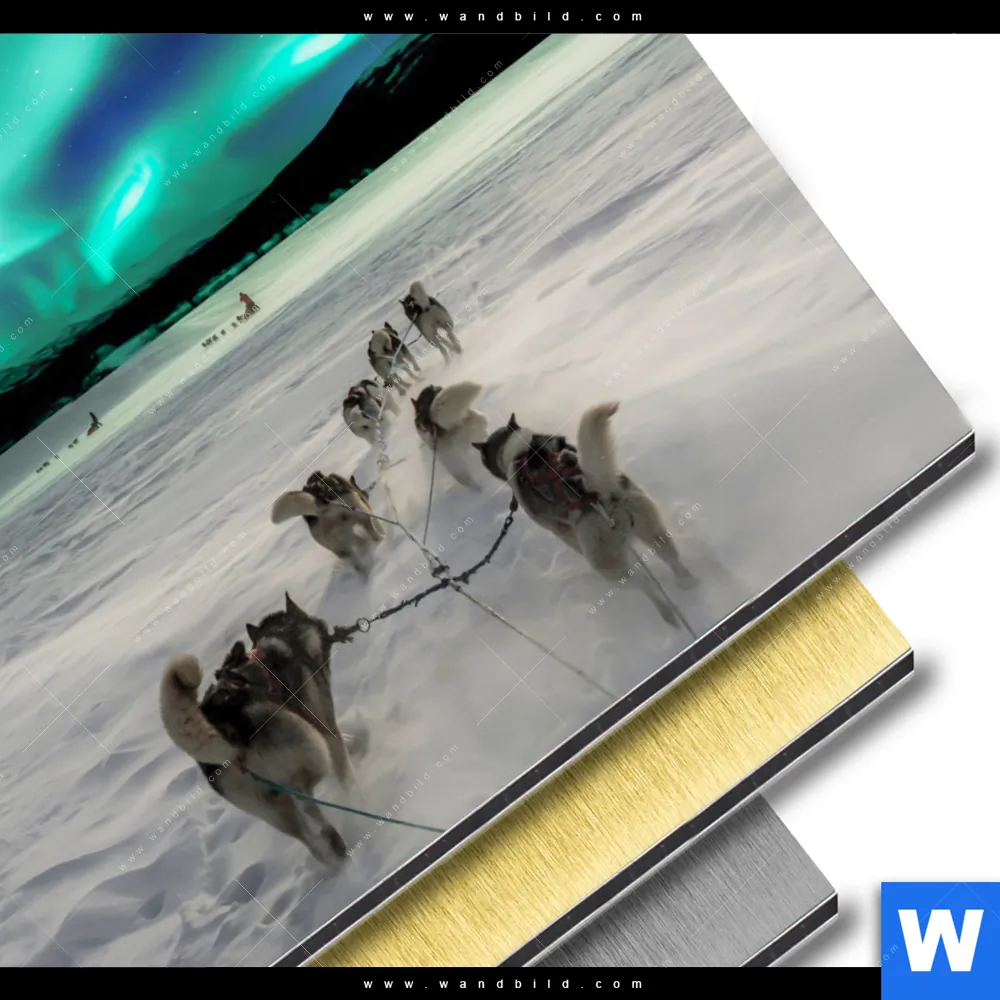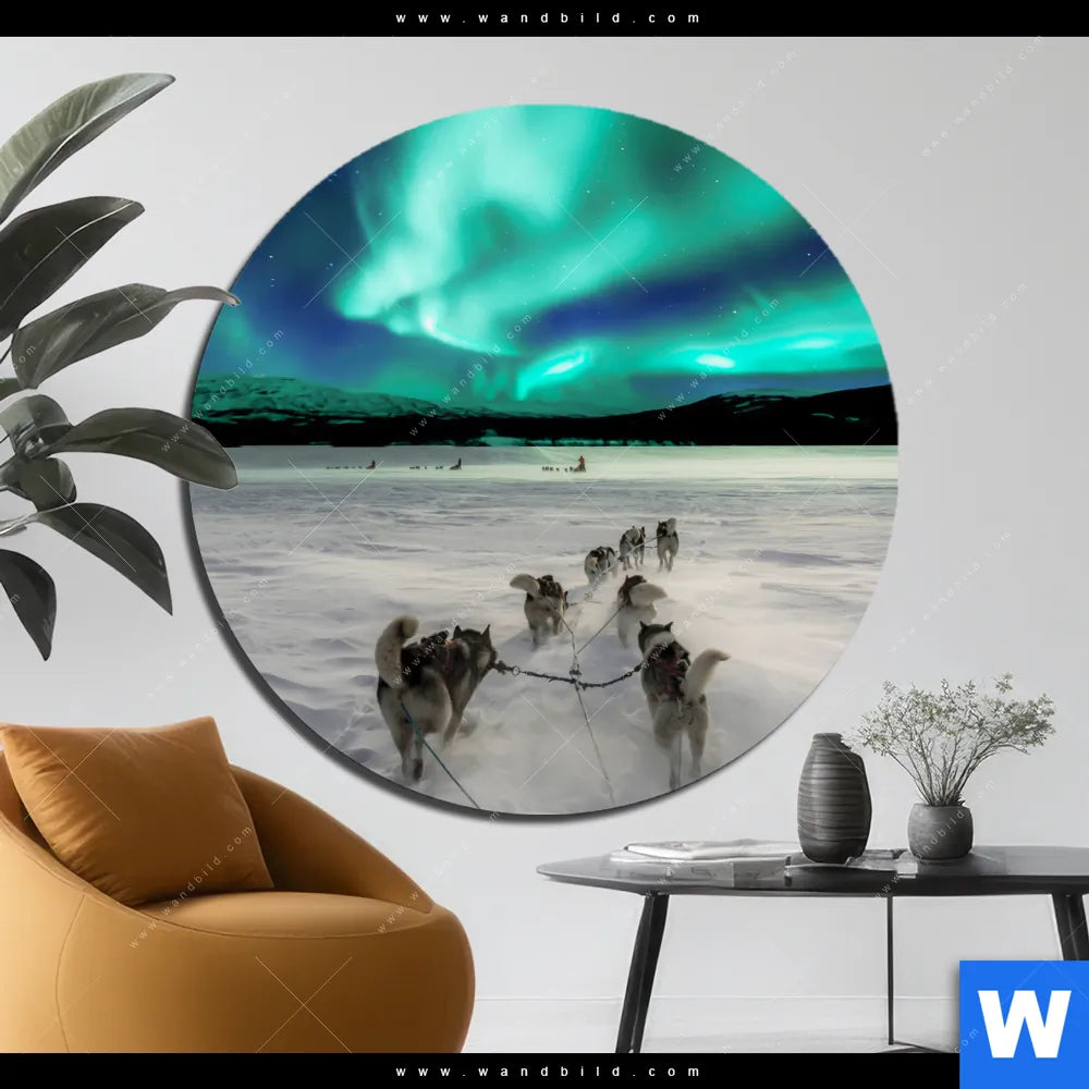 Alu-Dibond Bild | Nordlichter und Schlittenhunde | Rund