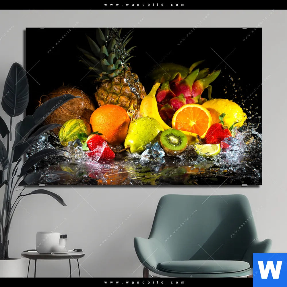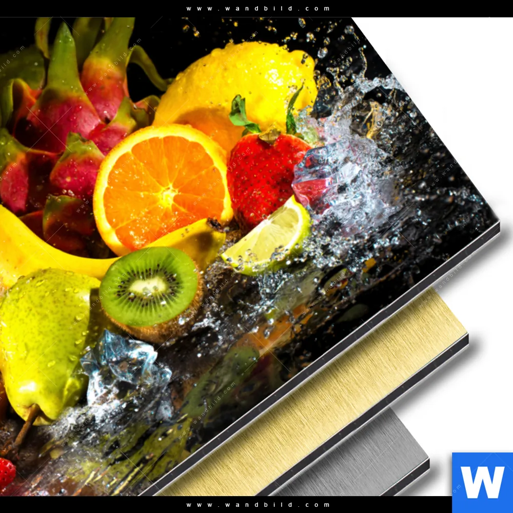 Alu-Dibond Bild | Obst-in spritzendem Wasser | Querformat