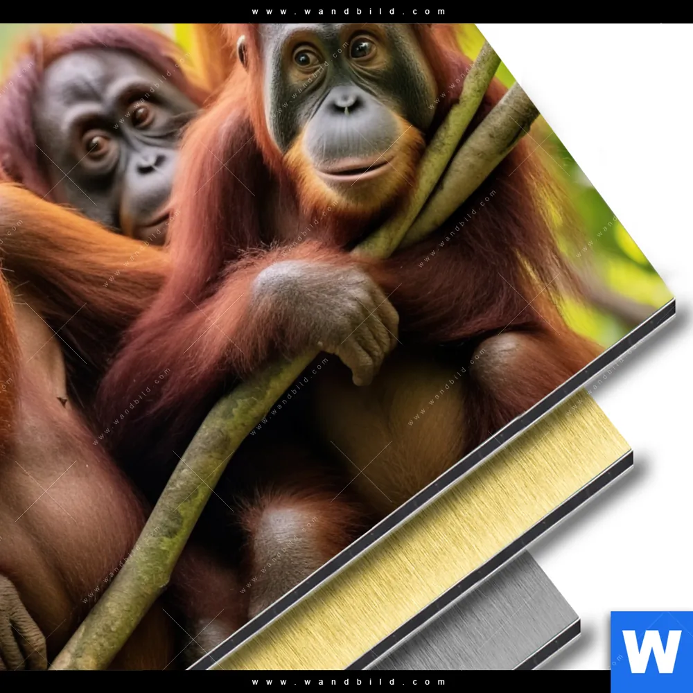 Alu-Dibond Bild | Orang Utan Familie im Regenwald | Rund