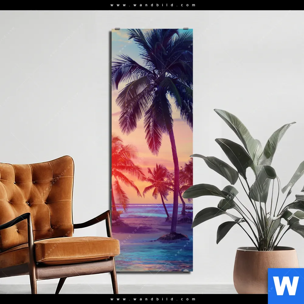 Alu-Dibond Bild | Palmen bei Sonnenuntergang | Schmal