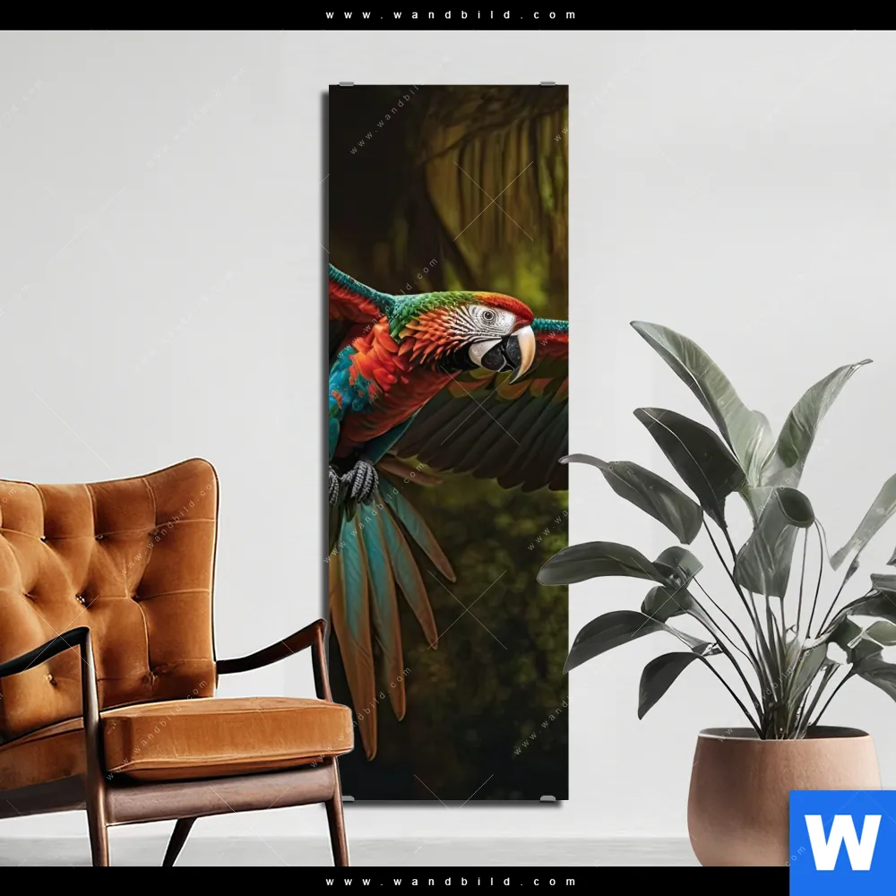 Alu-Dibond Bild | Papagei im Flug | Schmal