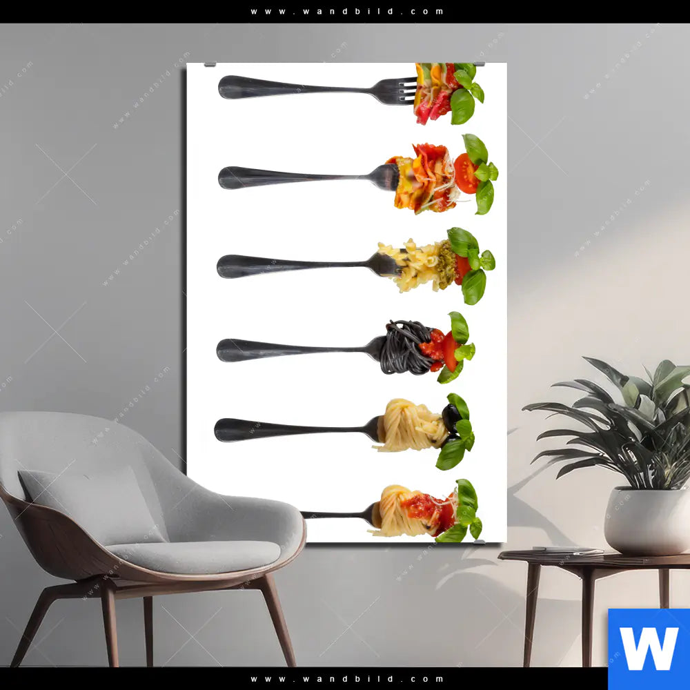 Alu-Dibond Bild | Pasta auf Gabeln | Hochformat