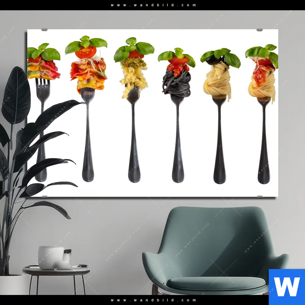 Alu-Dibond Bild | Pasta auf Gabeln | Querformat