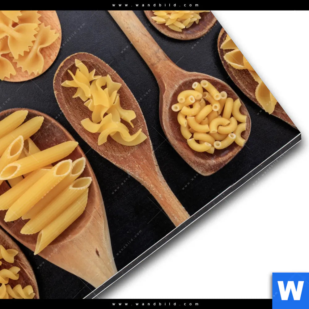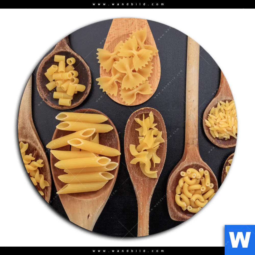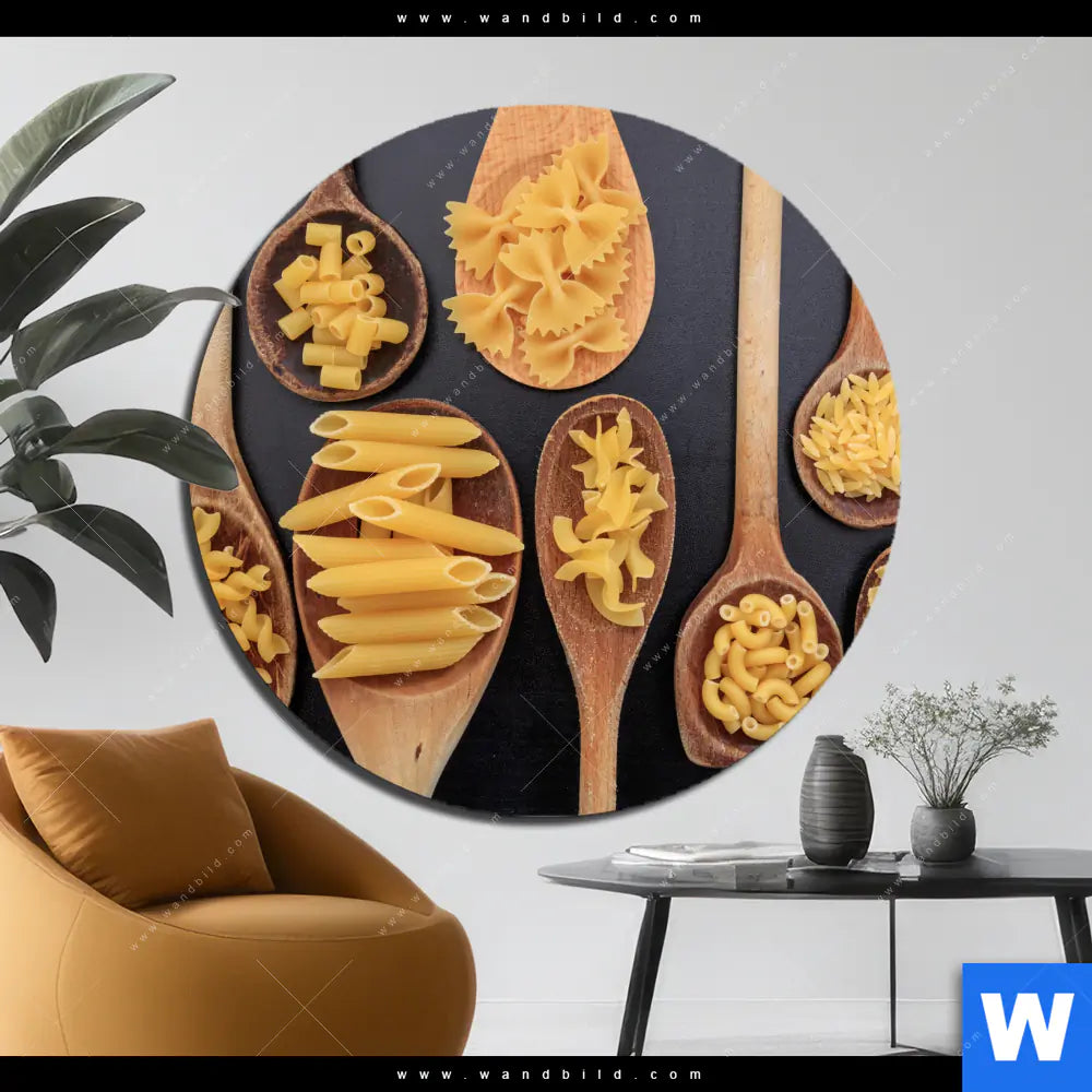 Alu-Dibond Bild | Pasta auf Löffeln | Rund