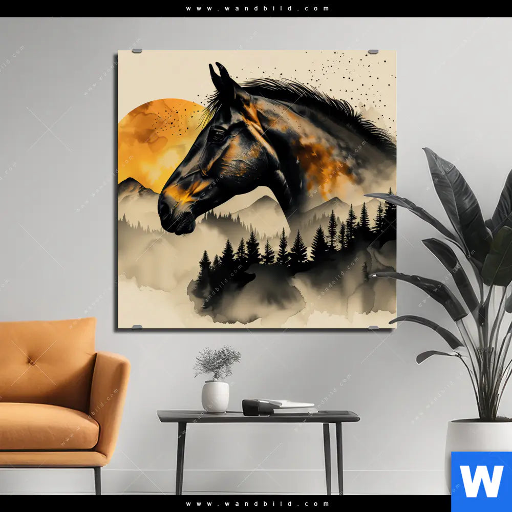 Alu-Dibond Bild | Pferd im Mondschein | Quadrat