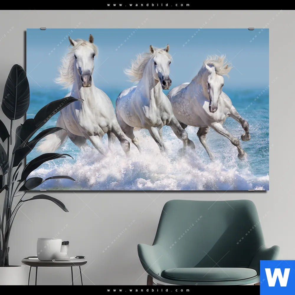 Alu-Dibond Bild | Pferdeherde am Strand | Querformat