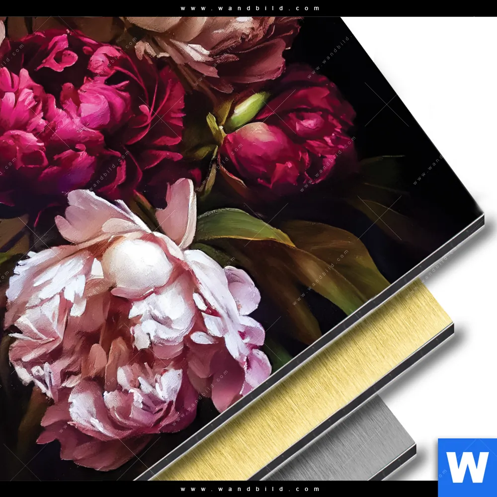 Alu-Dibond Bild | Pfingstrosen im Barockstil | Quadrat