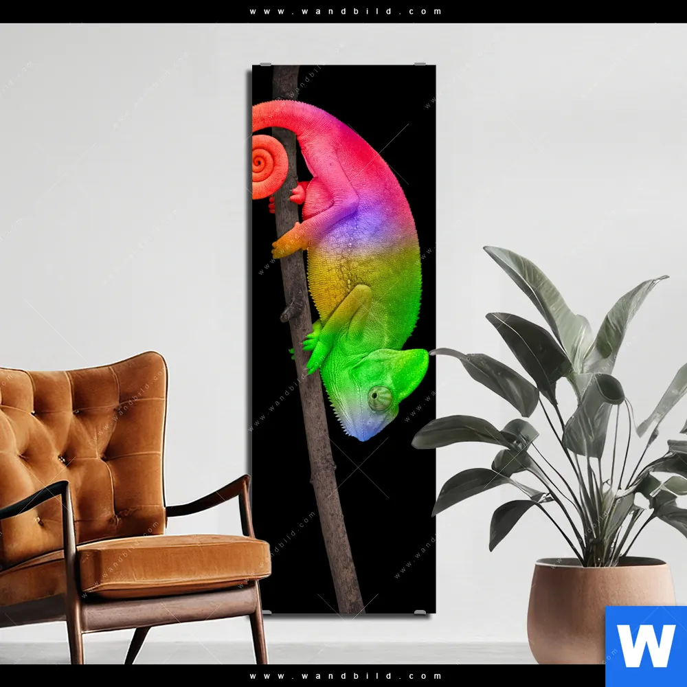Alu-Dibond Bild | Regenbogen Chamäleon | Schmal