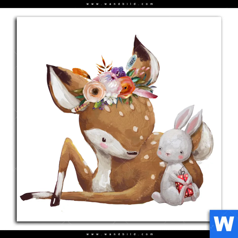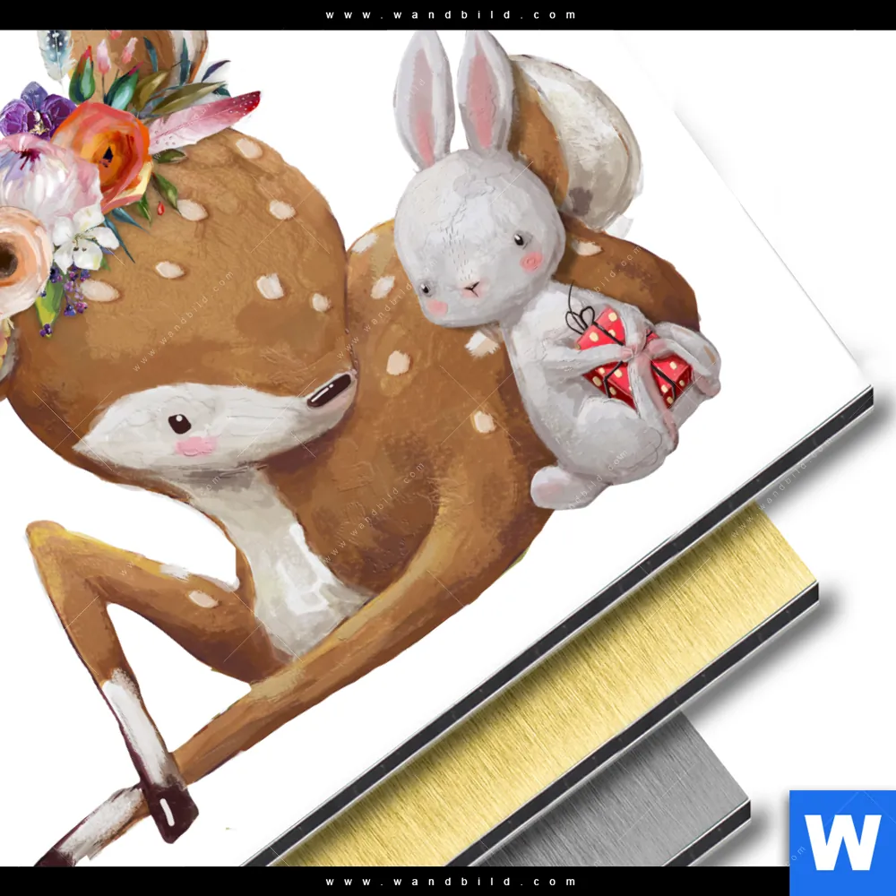 Alu-Dibond Bild | Reh & Häschen | Quadrat