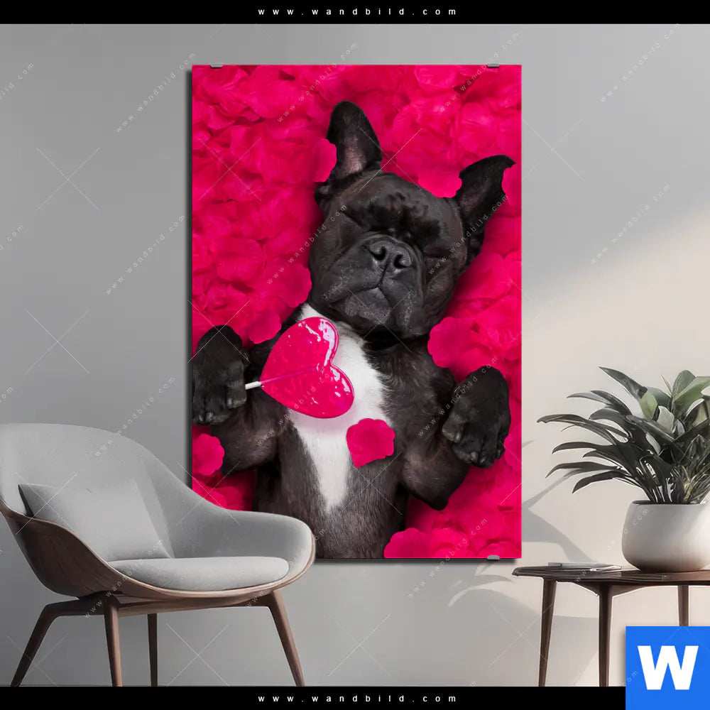 Alu-Dibond Bild | Romantik mit süßen Hunden | Hochformat