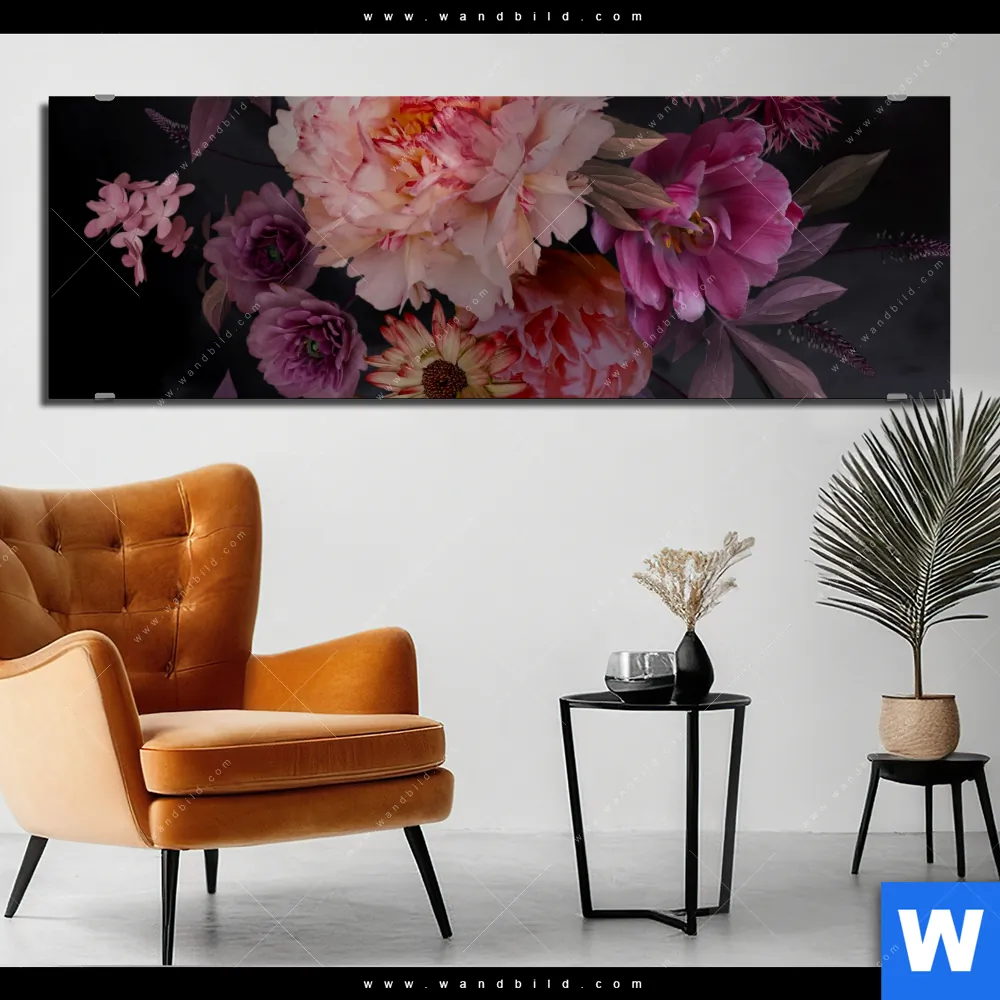 Alu-Dibond Bild | Romantische Blumenillustration | Panorama