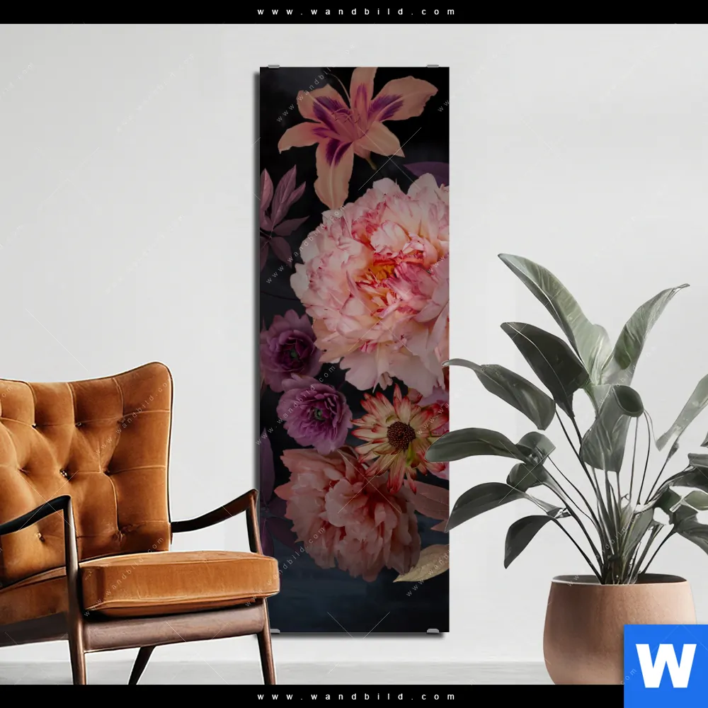 Alu-Dibond Bild | Romantische Blumenillustration | Schmal