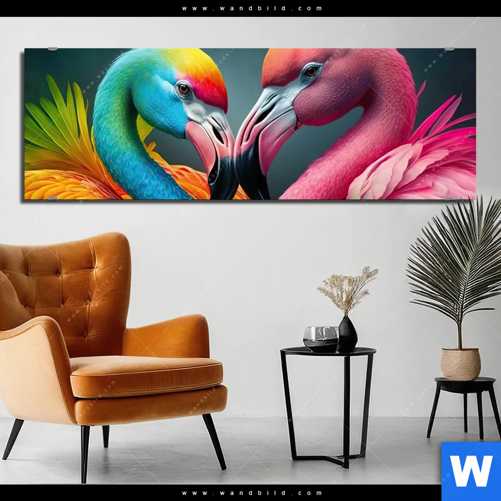 Alu-Dibond Bild | Romantische Flamingos | Panorama