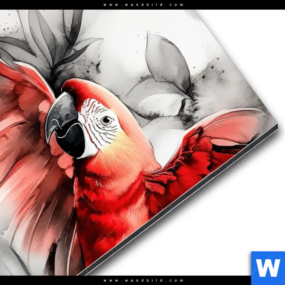 Alu-Dibond Bild | Roter Papagei im Flug | Hochformat