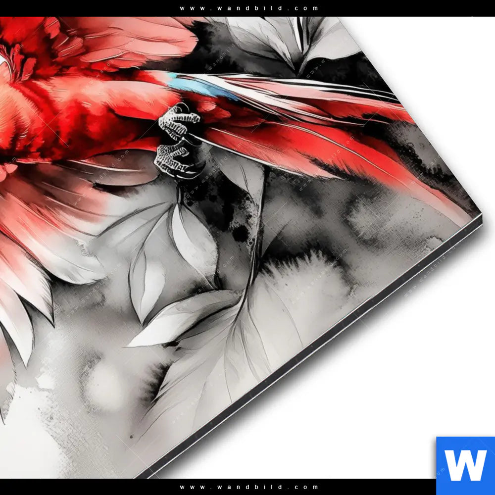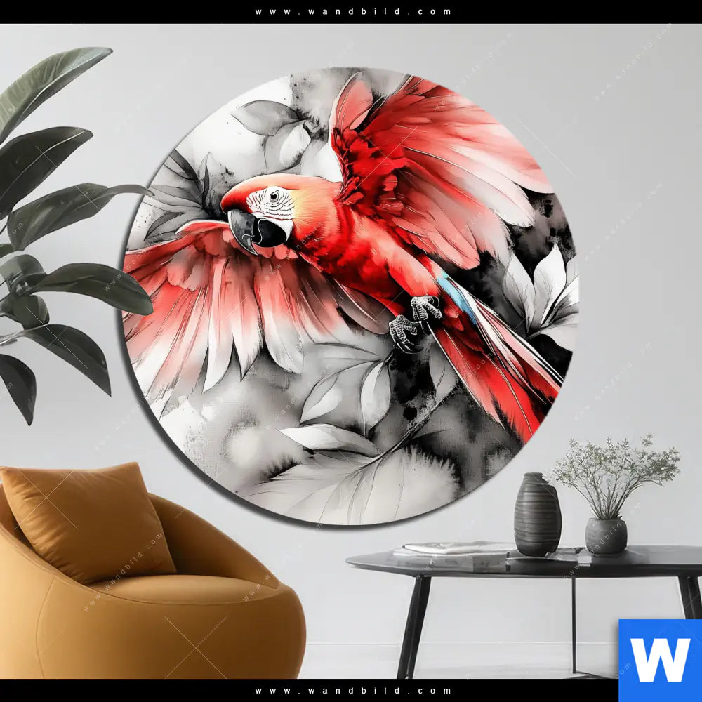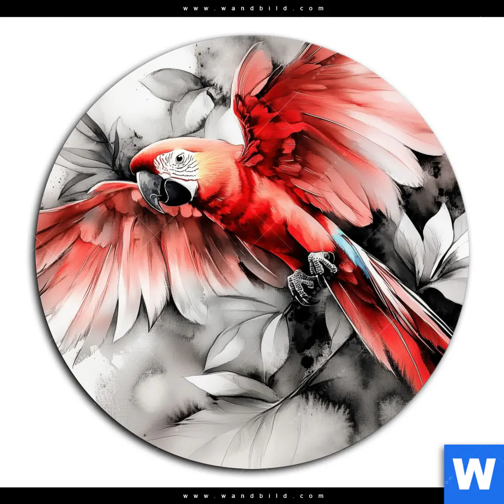 Alu-Dibond Bild | Roter Papagei im Flug | Rund