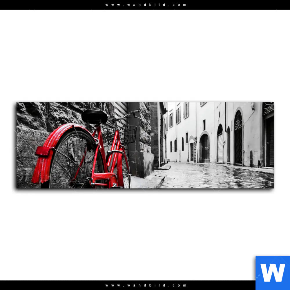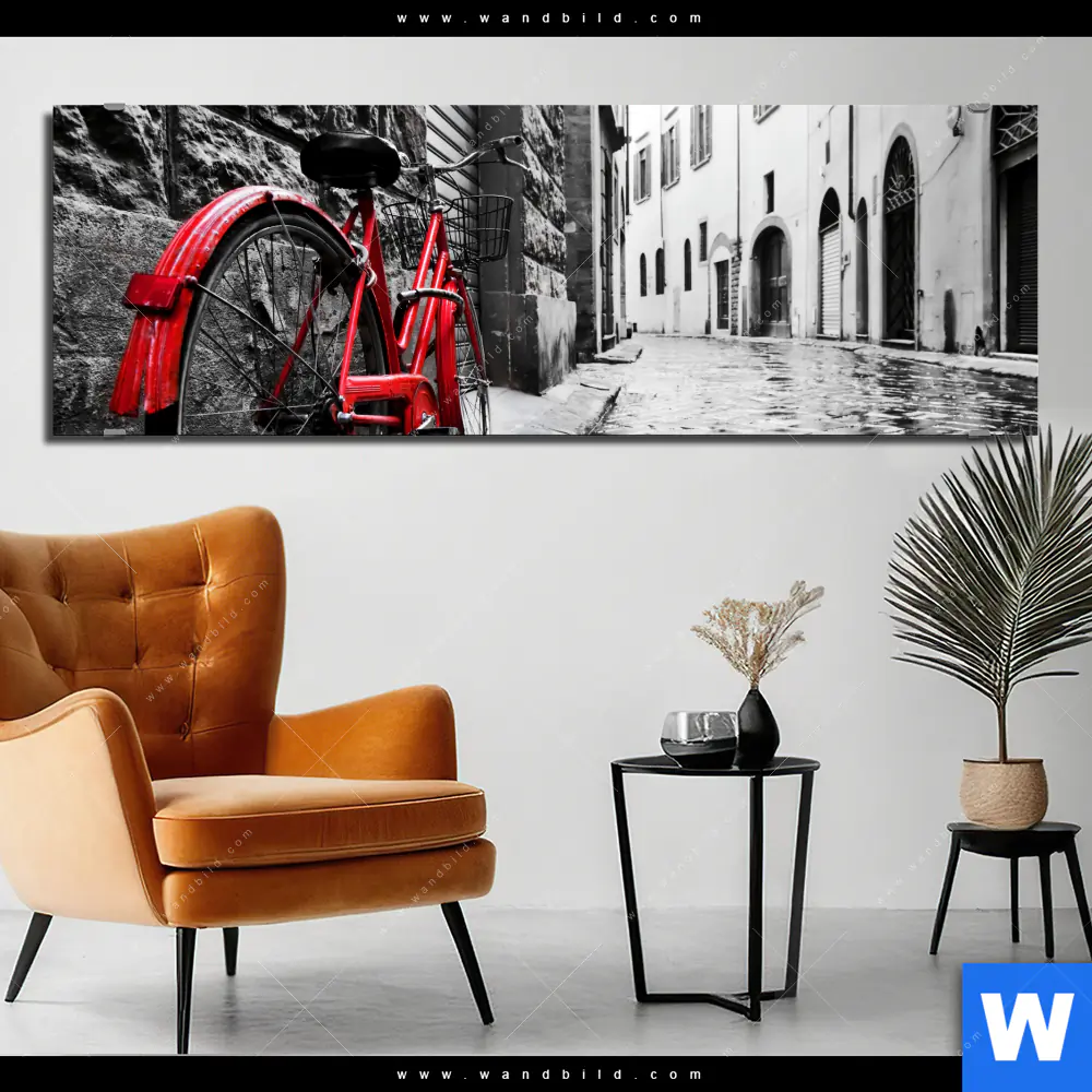 Alu-Dibond Bild | Rotes Fahrrad in Gasse | Panorama