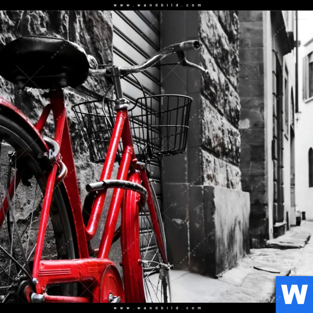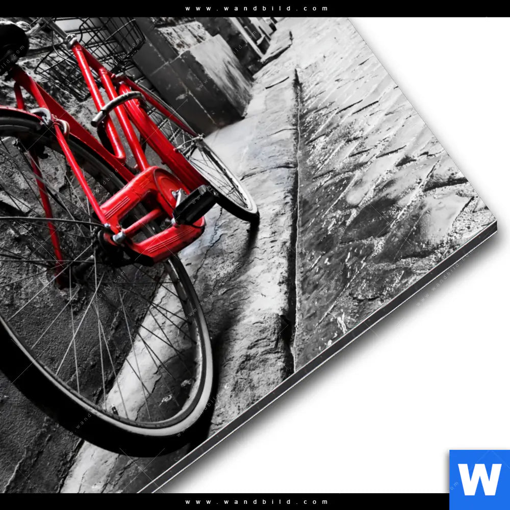 Alu-Dibond Bild | Rotes Fahrrad in Gasse | Quadrat