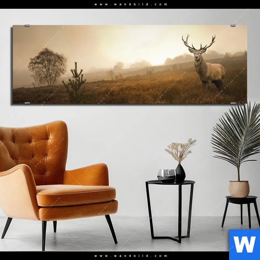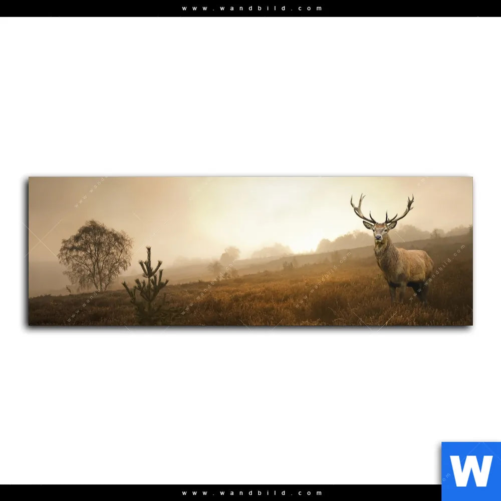 Alu-Dibond Bild | Rothirsch im Nebel | Panorama