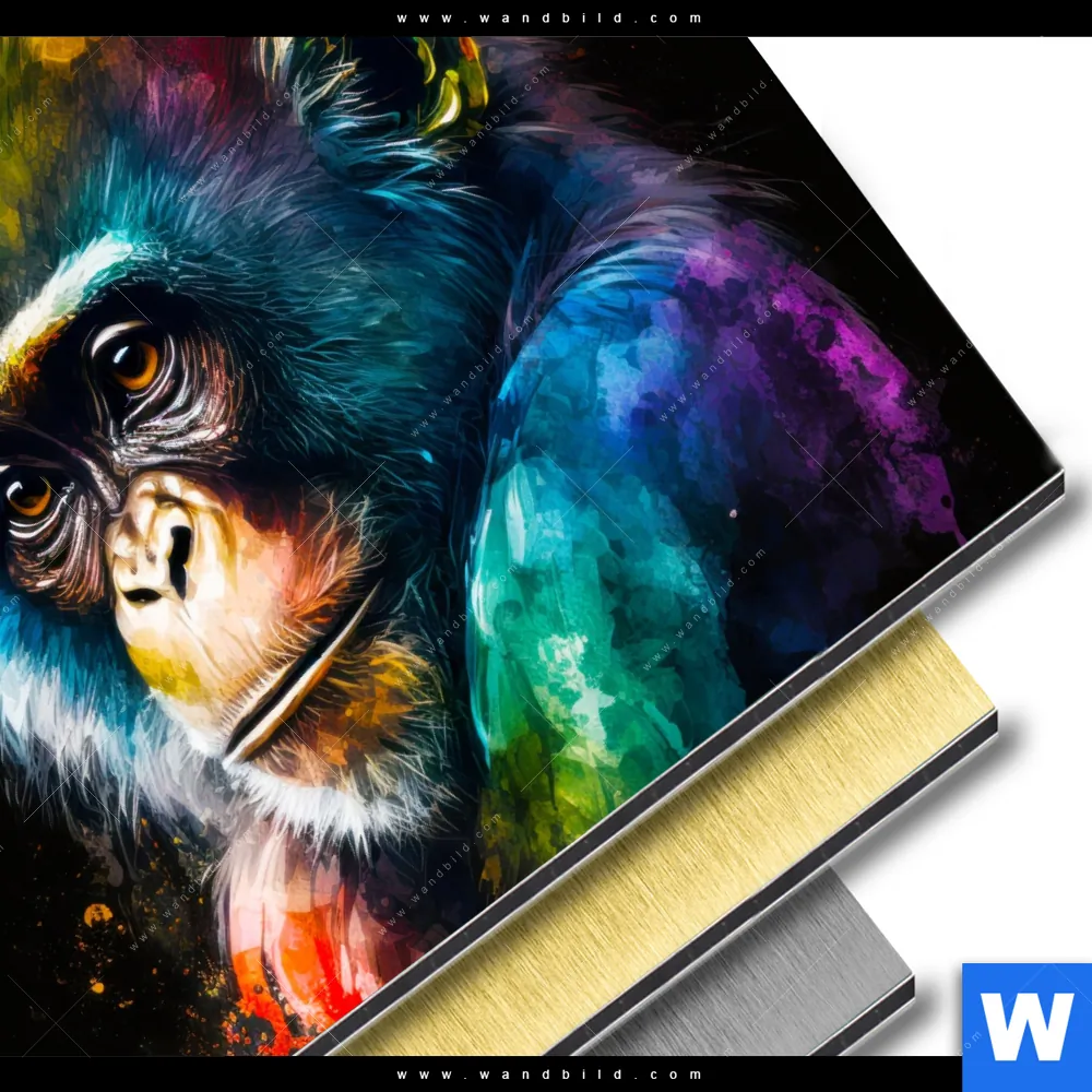 Alu-Dibond Bild | Schimpanse in bunten Farben | Rund
