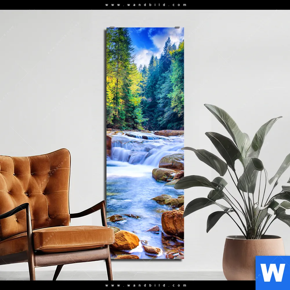 Alu-Dibond Bild | Schöner Wasserfall im Wald | Schmal