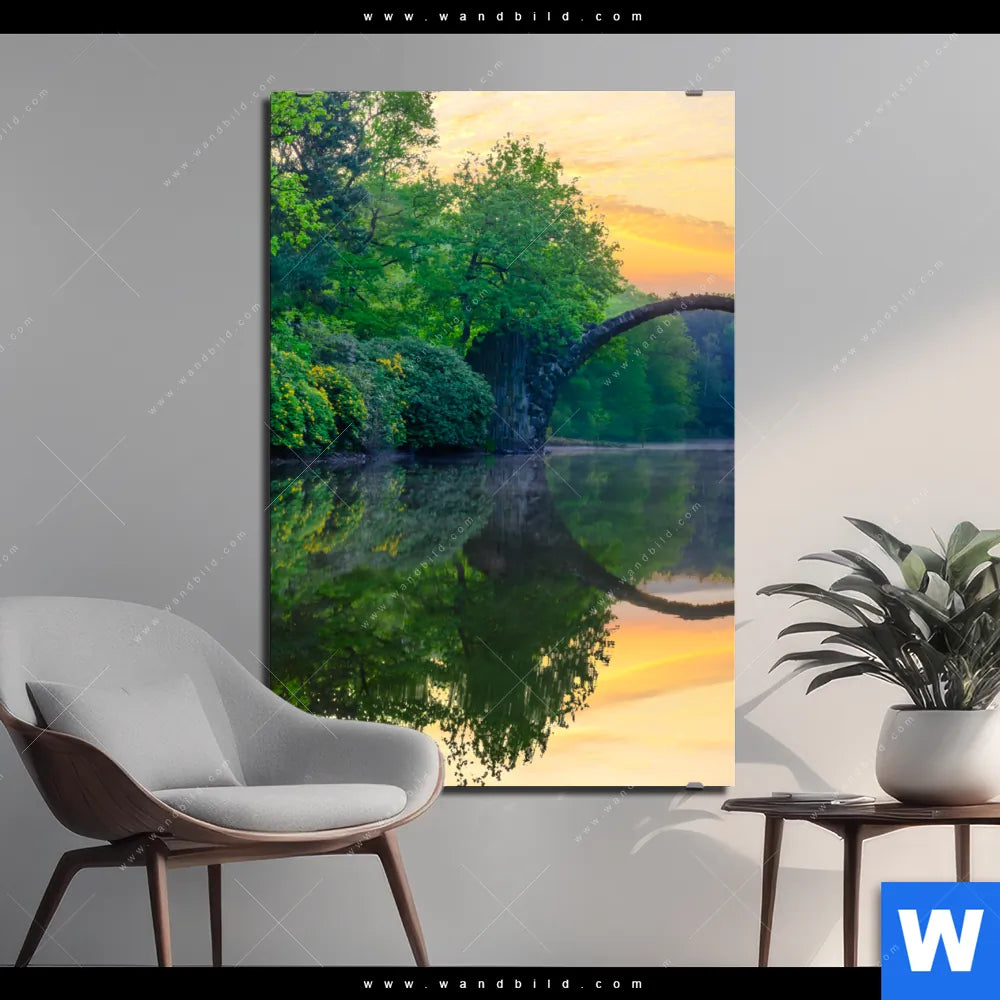 Alu-Dibond Bild | See mit alter Brücke aus Stein | Hochformat