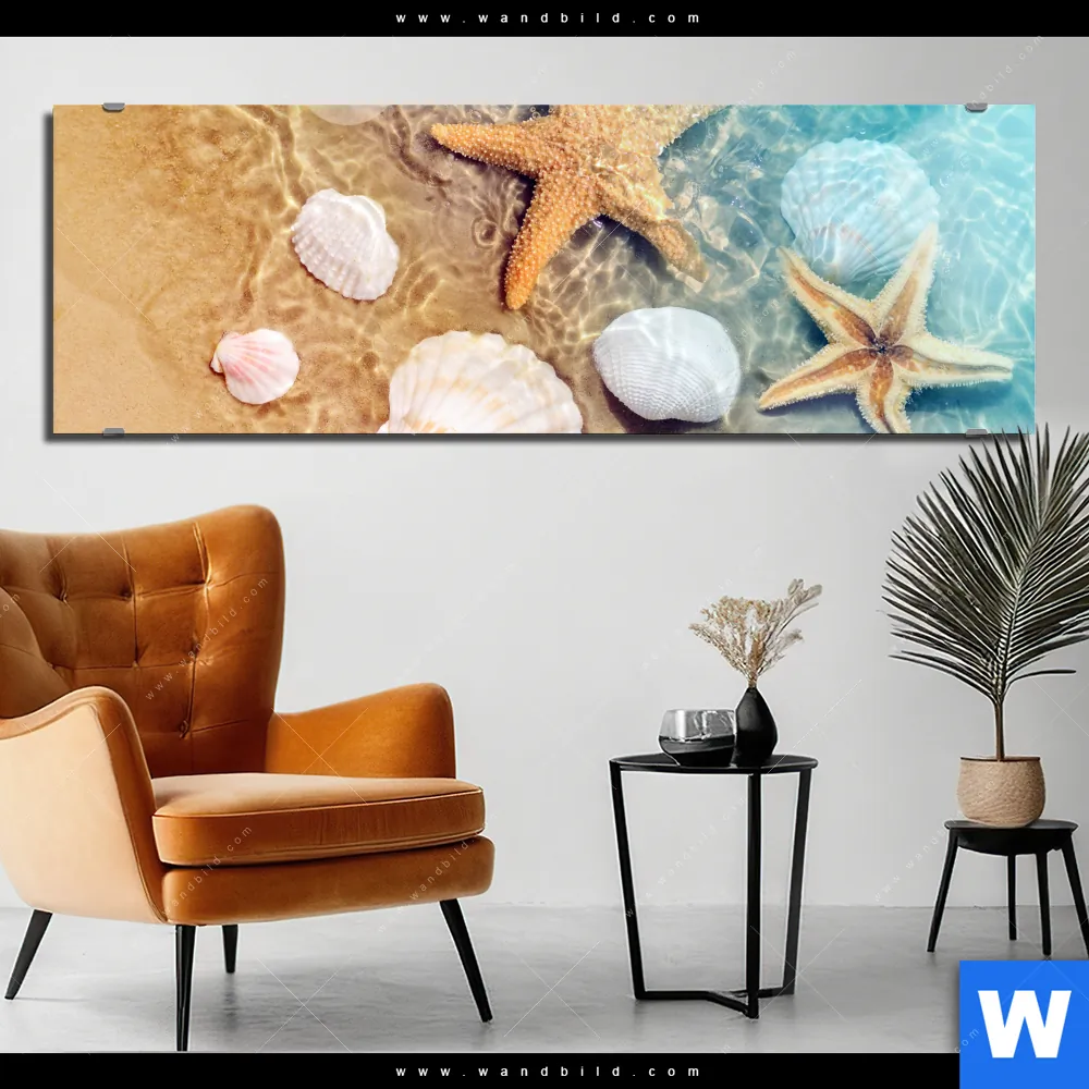 Alu-Dibond Bild | Seesterne & Muscheln | Panorama