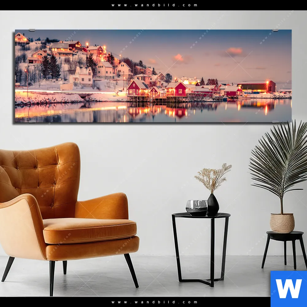 Alu-Dibond Bild | Skandinavische Stadt bei Nacht | Panorama