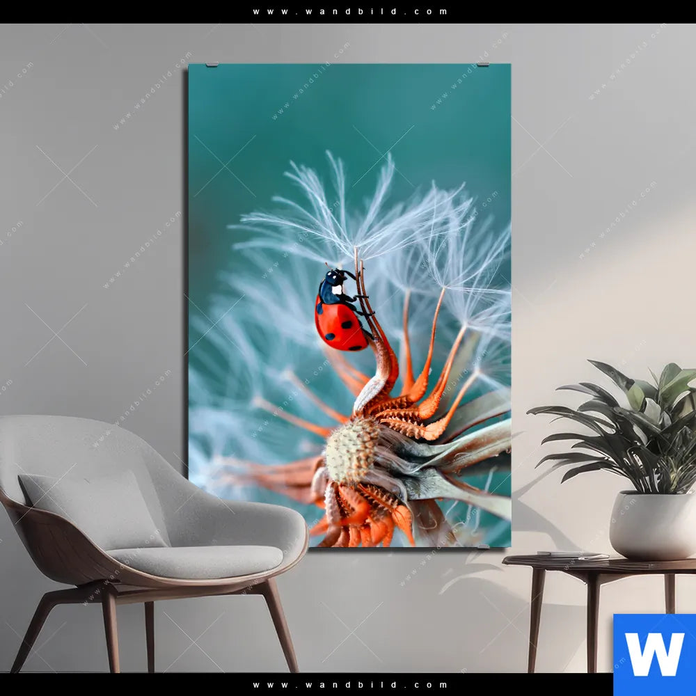 Alu-Dibond Bild | Sonnenkäfer auf Pusteblume | Hochformat