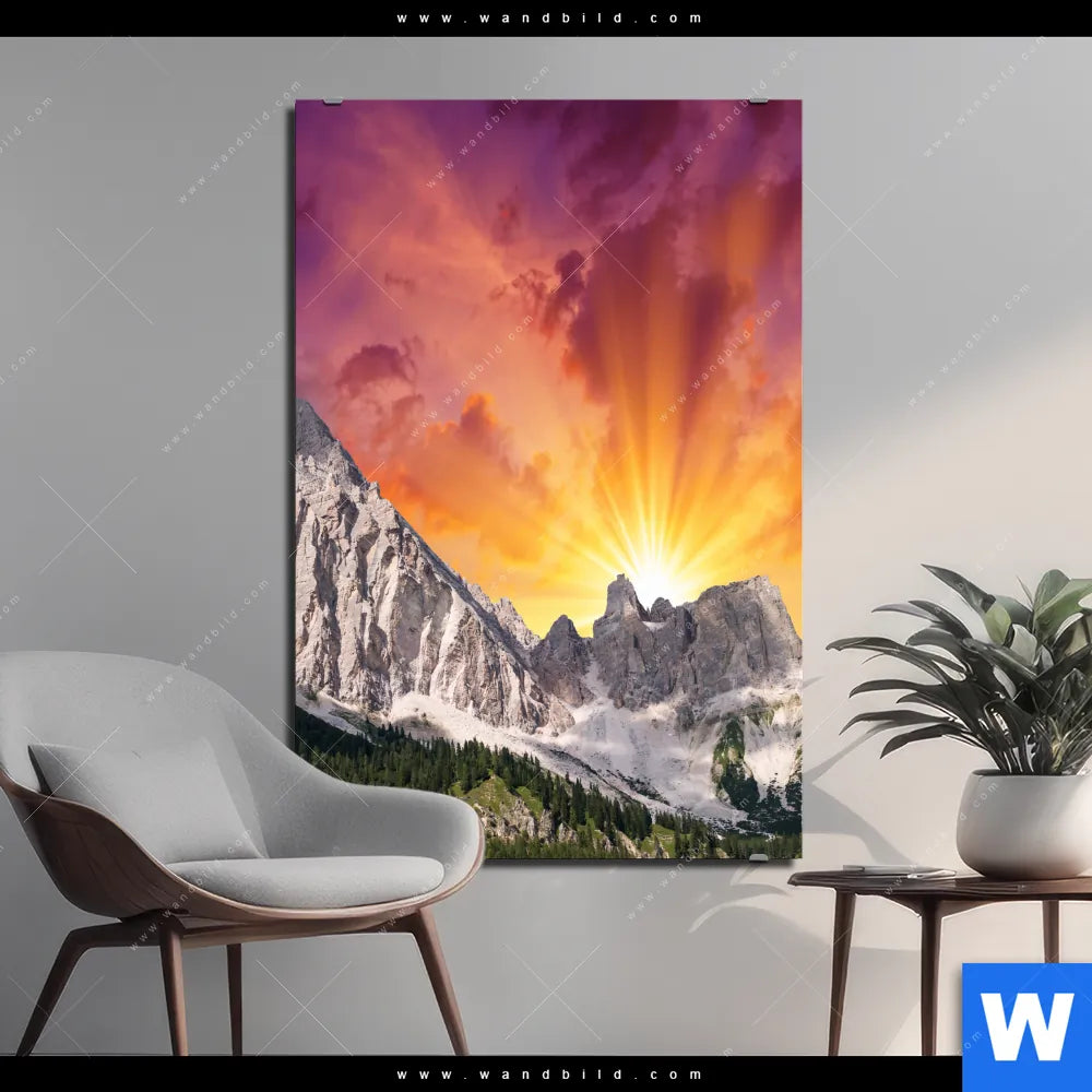 Alu-Dibond Bild | Sonnenuntergang in den Bergen | Hochformat