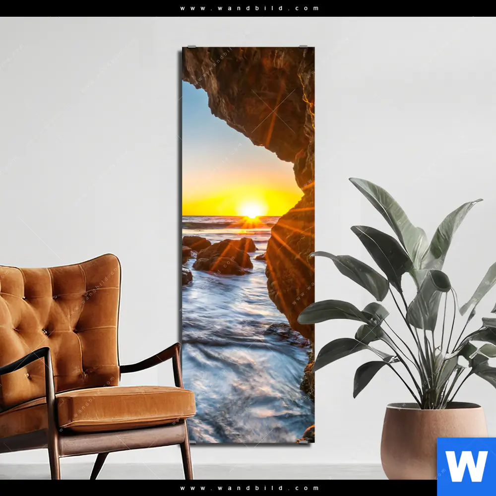 Alu-Dibond Bild | Sonnenuntergang in Meeresgrotte | Schmal
