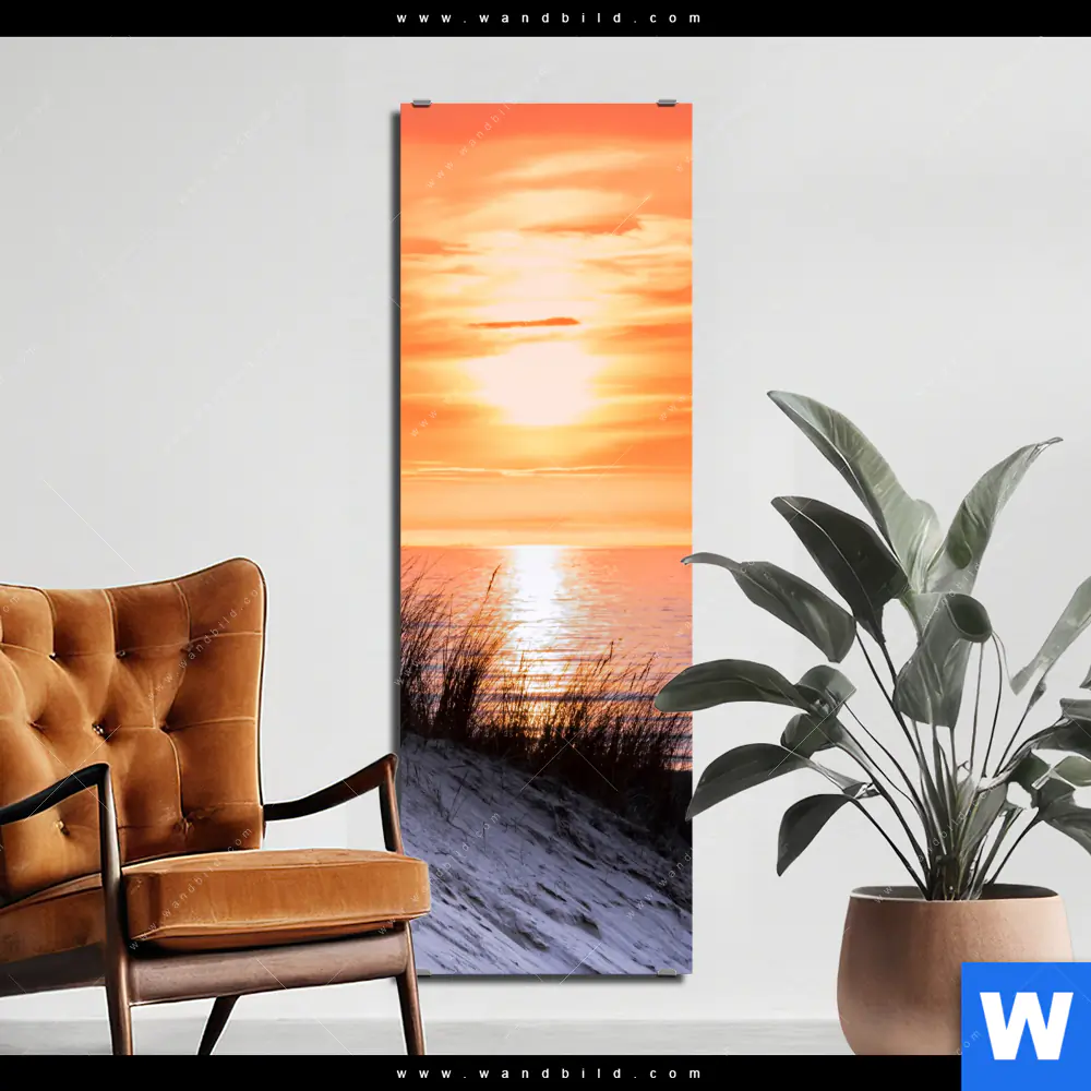 Alu-Dibond Bild | Sonnenuntergang mit Düne und Meer | Schmal