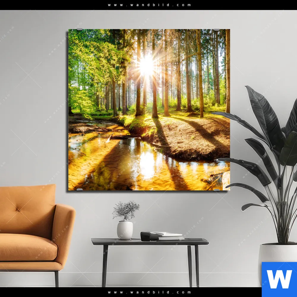 Alu-Dibond Bild | Sonniger Wald | Quadrat
