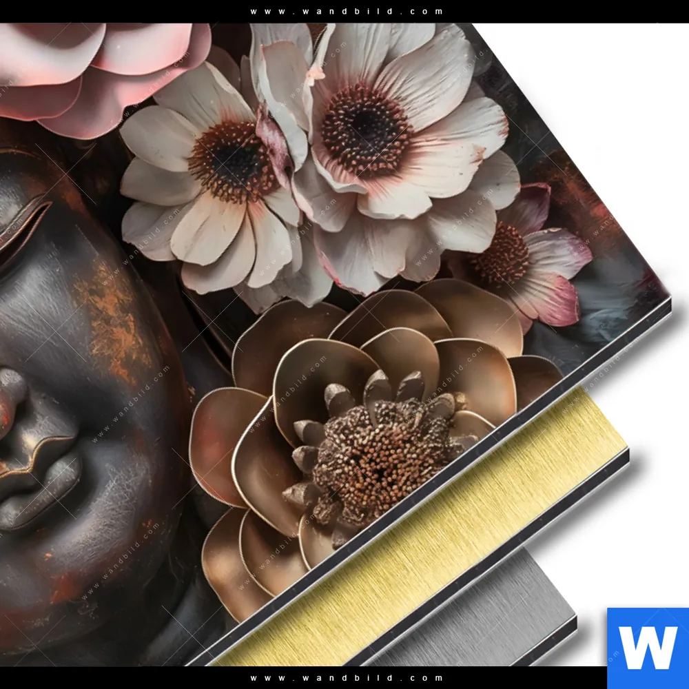 Alu-Dibond Bild | Spiritueller Buddha und Blumen | Querformat