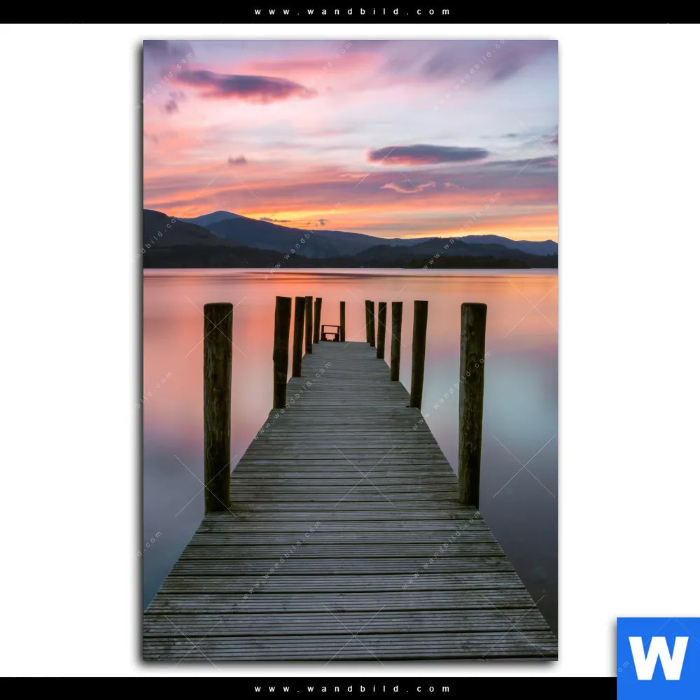 Alu-Dibond Bild | Steg in den Sonnenuntergang | Hochformat