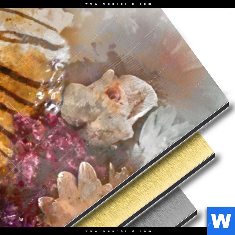 Alu-Dibond Bild | Tiger & Blumen | Panorama