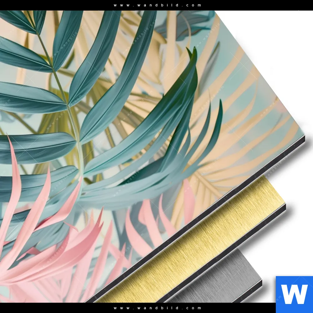 Alu-Dibond Bild | Tropische Blätter in Pastellfarben | Hochformat