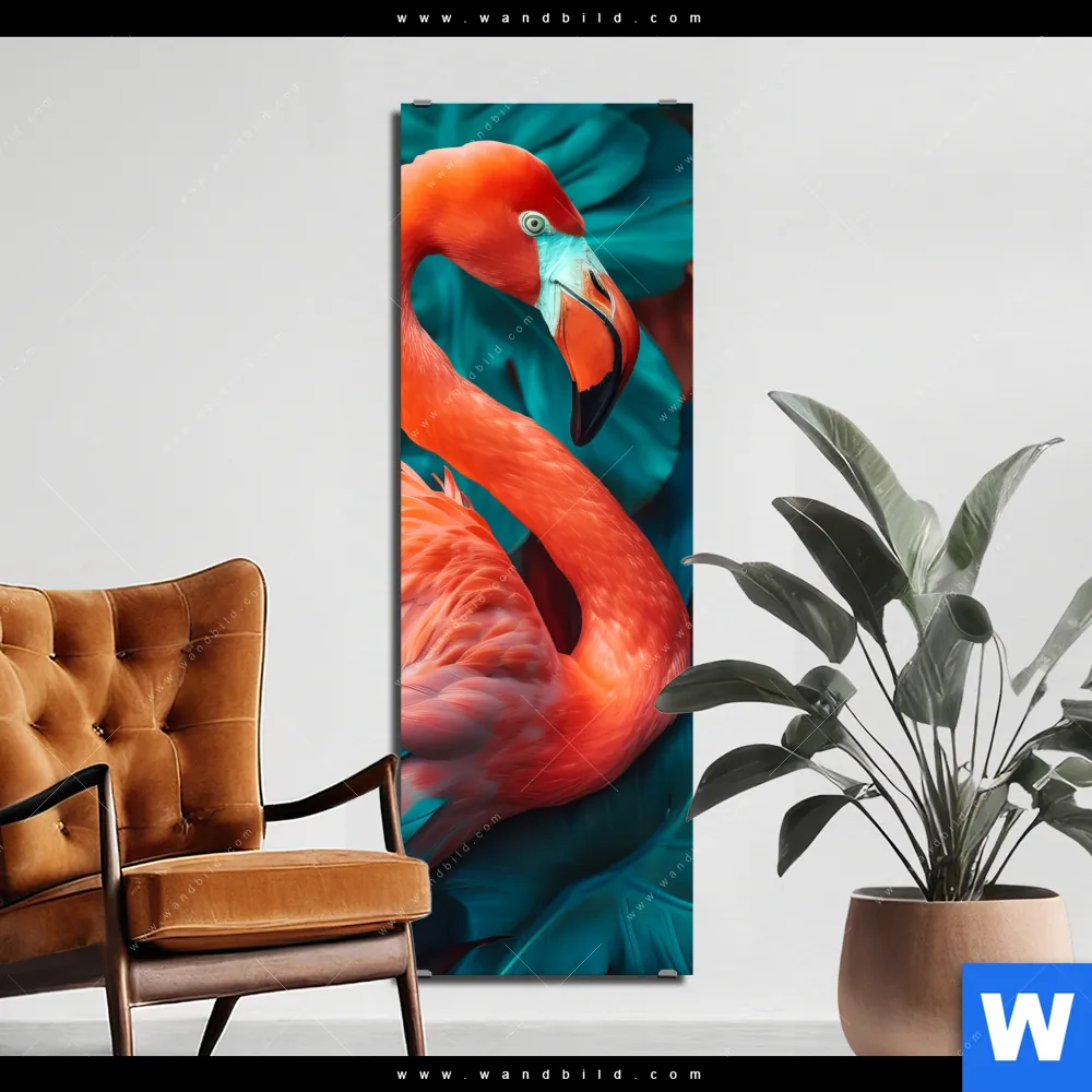 Alu-Dibond Bild | Tropischer Flamingo Traum | Schmal