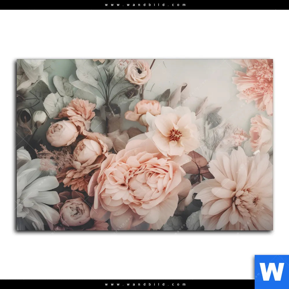 Alu-Dibond Bild | Vintage Blüten im Retro-Stil | Querformat